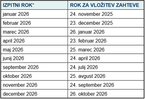 Izpiti se opravljajo v terminih, ki se objavijo na spletni strani Centra za izobraževanje v pravosodju.